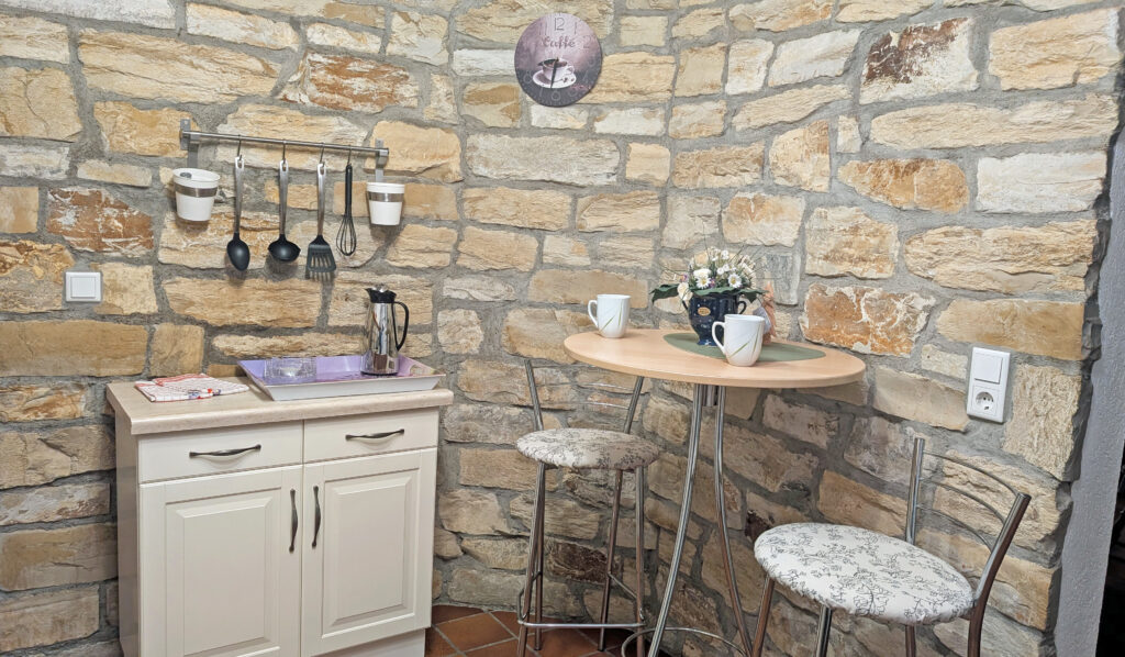- eine geräumige Küche mit Hochtisch und Sitzgelegenheiten